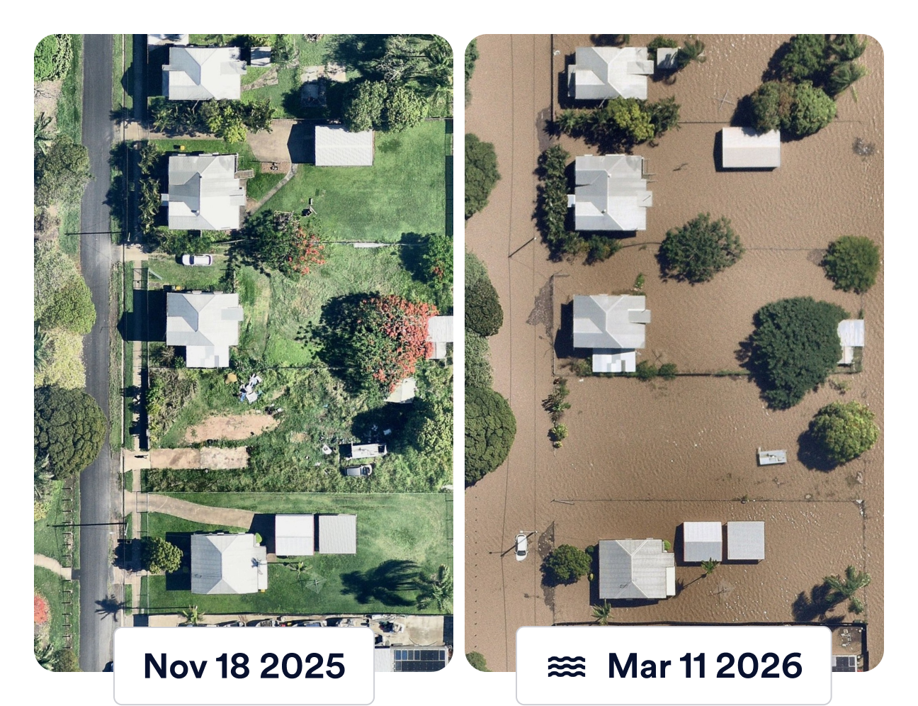 Nearmap ImpactResponse delivers high-resolution post-event imagery and FEMA-aligned AI damage classification as soon as 24–48 hours after a qualifying disaster. Carriers, government agencies, and emergency managers get a property-level view of damage before ground crews can safely access affected areas.