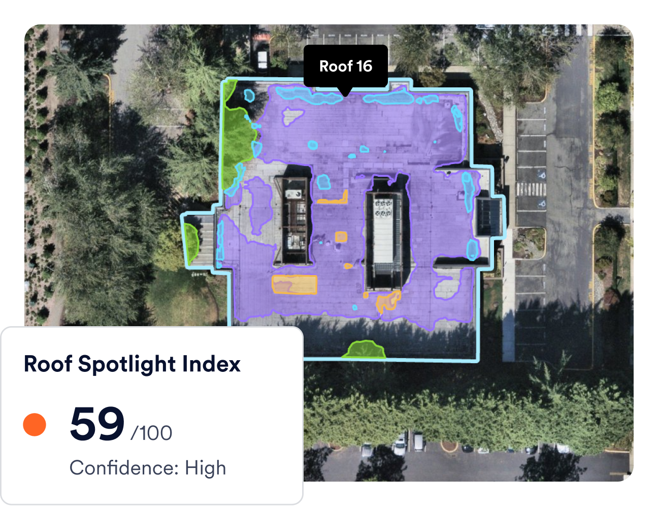 Spot deterioration before it becomes critical. Roof condition scores and up-to-date aerial imagery help you identify issues early so you can schedule repairs before they turn into expensive emergencies.