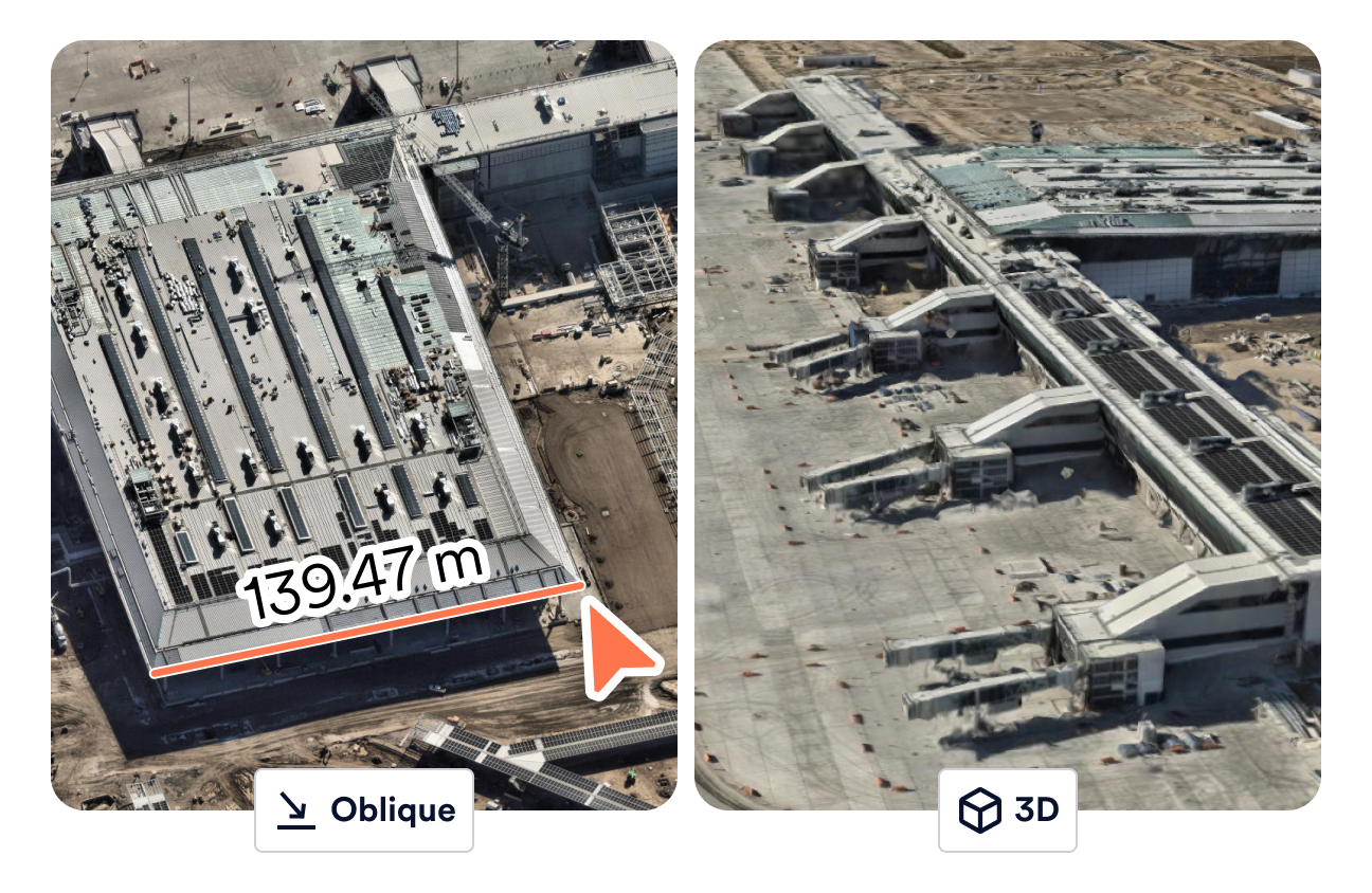 Vertical. Oblique. 3D. NIR. We capture your world from every angle. High-resolution Vertical imagery gives you the plan view. Oblique imagery shows you the façade. 3D textured mesh lets you immerse yourself in the environment. Near-Infrared (NIR) reveals what the naked eye can’t see. Together, these aerial imagery types provide inspection-level visibility into structures, terrain, and vegetation — supporting confident remote assessment across planning, inspection, and monitoring workflows.